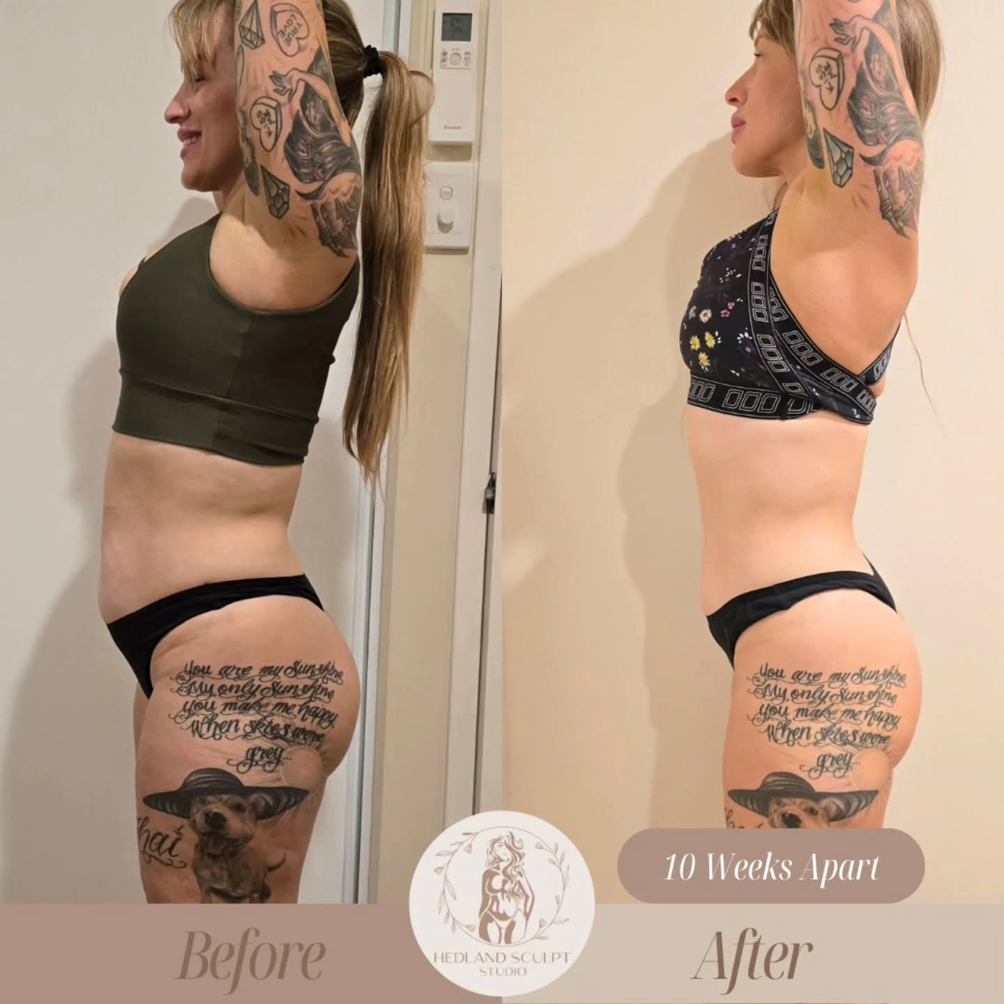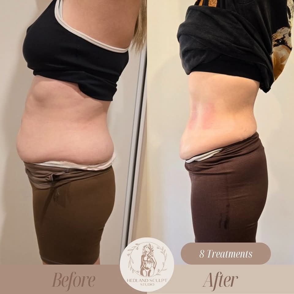 “All before and after images of Hedland Sculpt Studio clients. Every person responds differently, and factors such as lifestyle, overall health, physical activity, and consistency of treatments can influence outcomes.”