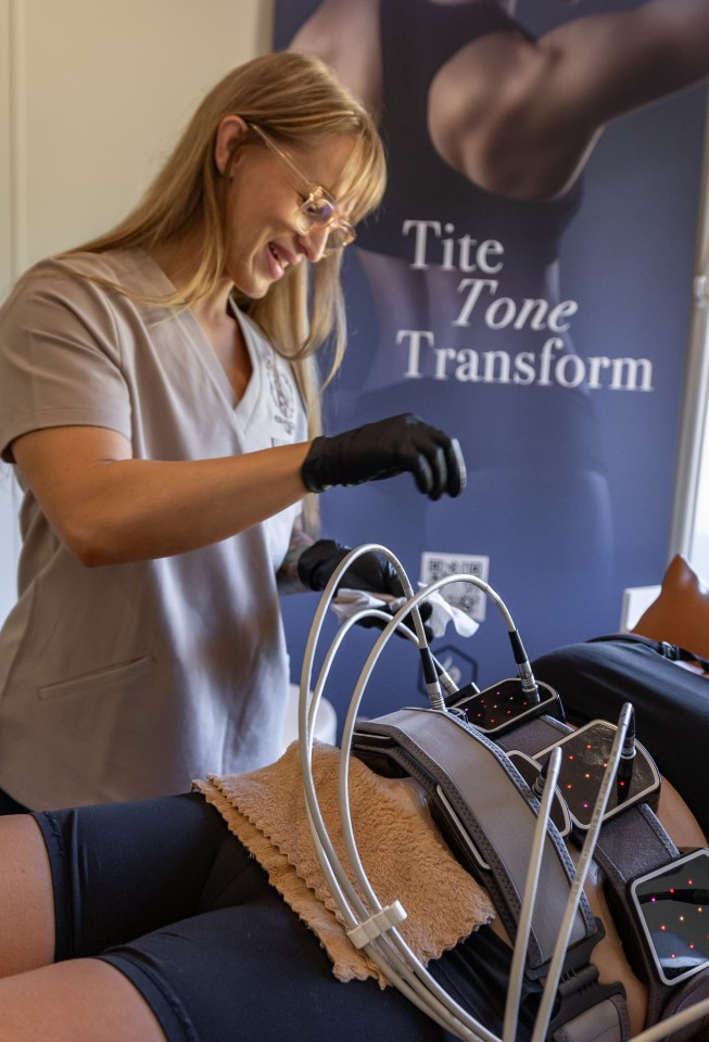 Transform combines EMS (Electrical Muscle Stimulation) and RF (Radio Frequency Heat).